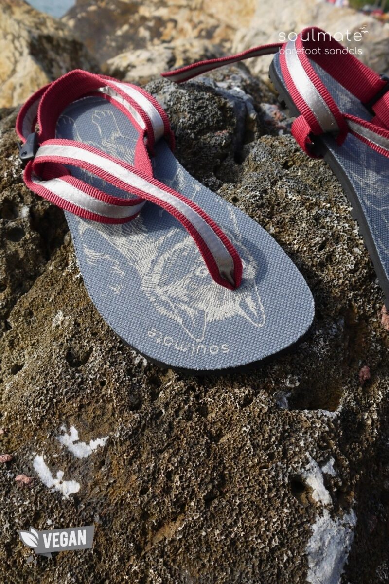 Soulmate Active-G Barfuß Minimalistische Vegan Sandalen / Trockenes Rosenrot-Silber