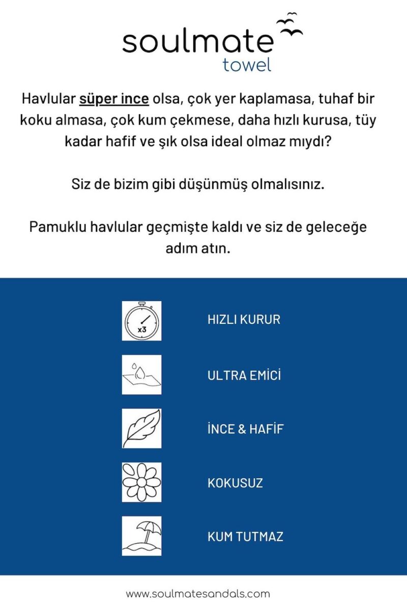 Kumlu, hacimli, ağır, kokmuş ve sade havlulara HAYIR deyin. Bu sevimli, çift taraflı, süper ince ve ultra su emici havluyla herkesin başını döndürün. Plajda, yogada, havuzda ve seyahatde ideal arkadaşınız olacak.